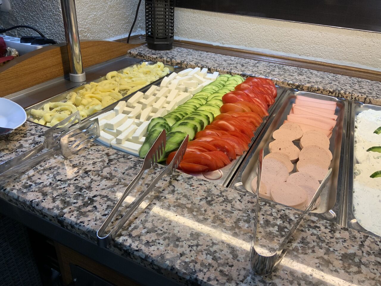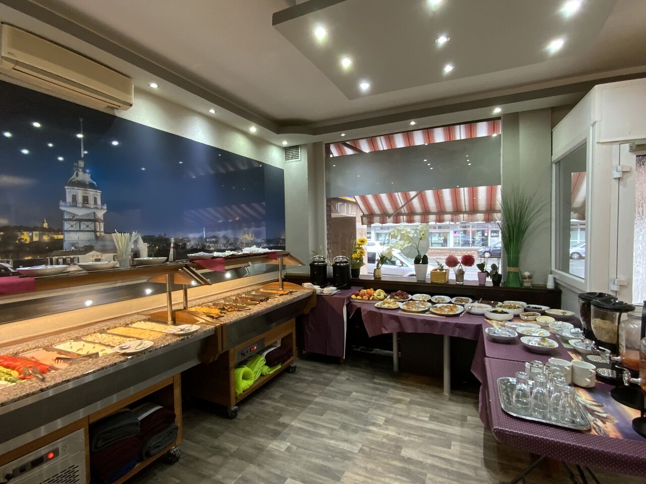 Die türkische Küche verwöhnt Sie mit einem exklusiven Angebot an Köstlichkeiten. Die umfassenden regionalen Gerichte und die Salate werden Sie begeistern. Zu heißem Tee, zu kalten Erfrischungsgetränken, zu frischem Kaffee und zu frisch gepressten Säften gibt es bei uns Pommes frites, Schnitzel, Pizzas, Wraps, Baguette, Kebab, Käse, Köfte oder Fisch. Lassen Sie sich für zwischendurch oder als Nachspeise von unseren vielfältigen Backwaren oder unserem frischen Brot verzaubern. Einem leckeren Abendessen bei uns steht nichts im Wege. Bedienen Sie sich an unserem köstlichen Buffet! Die Auswahl reicht von Vorspeisen und Nachspeisen über eine Vielfalt an Hauptgerichten.